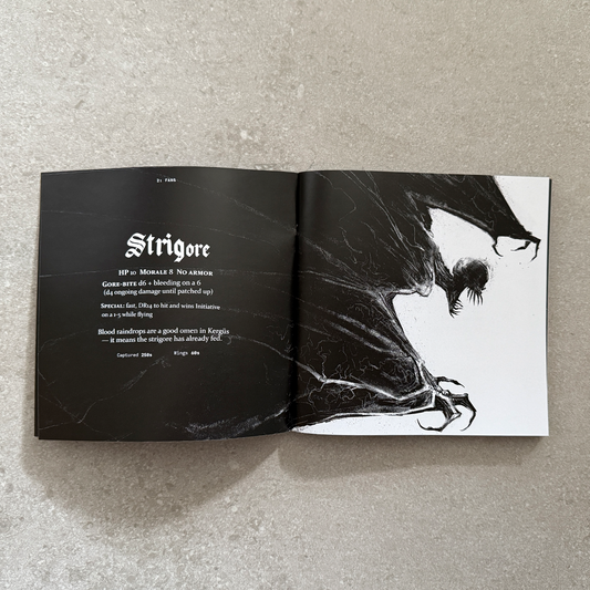 Set sail and embark upon the grey waves with a mouthful of ash. Tephrotic Nightmares is a MÖRK BORG adventure campaign by Luke Gearing, Johan Nohr and Jarrett Crader. 160 sooty pages of grueling misadventure await.