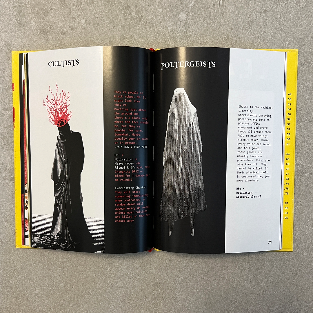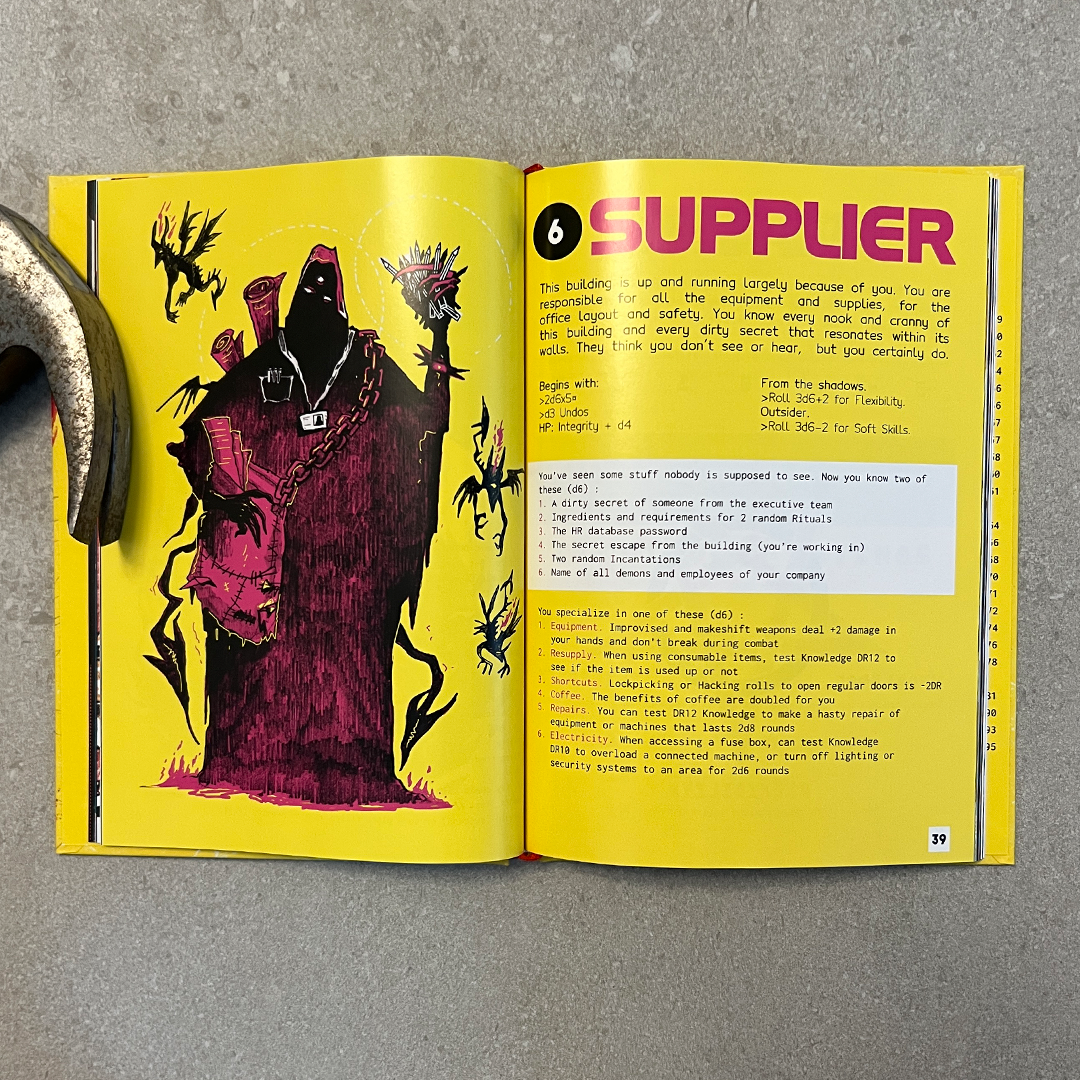 Corp Borg is a rules-light, office-crawl OSR tabletop RPG. While inspired heavily by MÖRK BORG aesthetics and gameplay, it's a standalone game - all you need to play is this book.