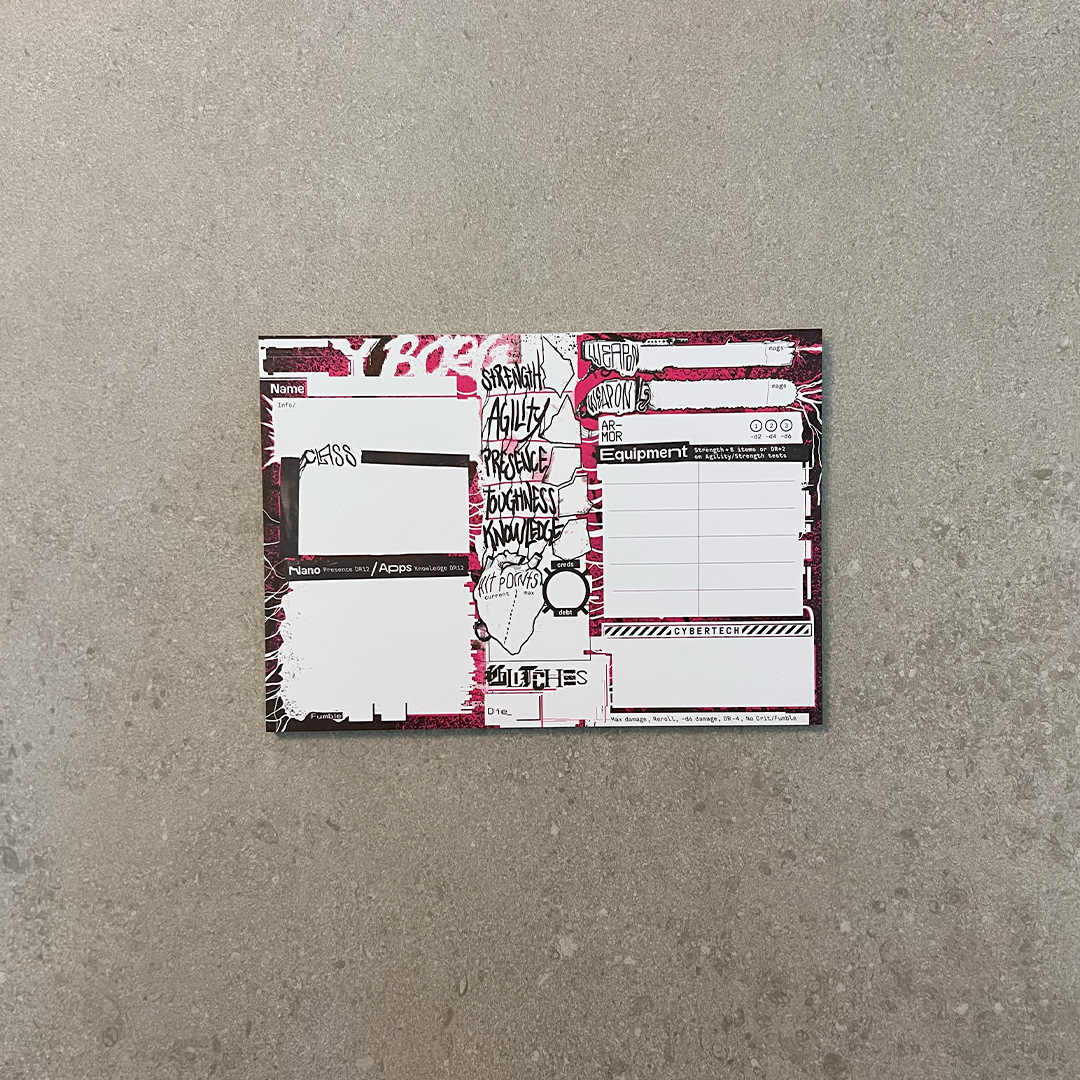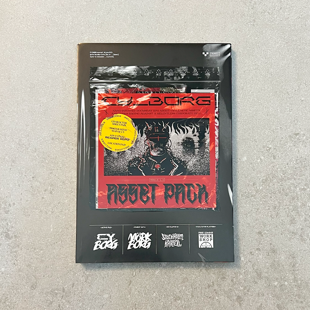 The CY_BORG Asset Pack is a bundle of game accessories that'll make your cybernetic life somewhat easier at the table. Including:
