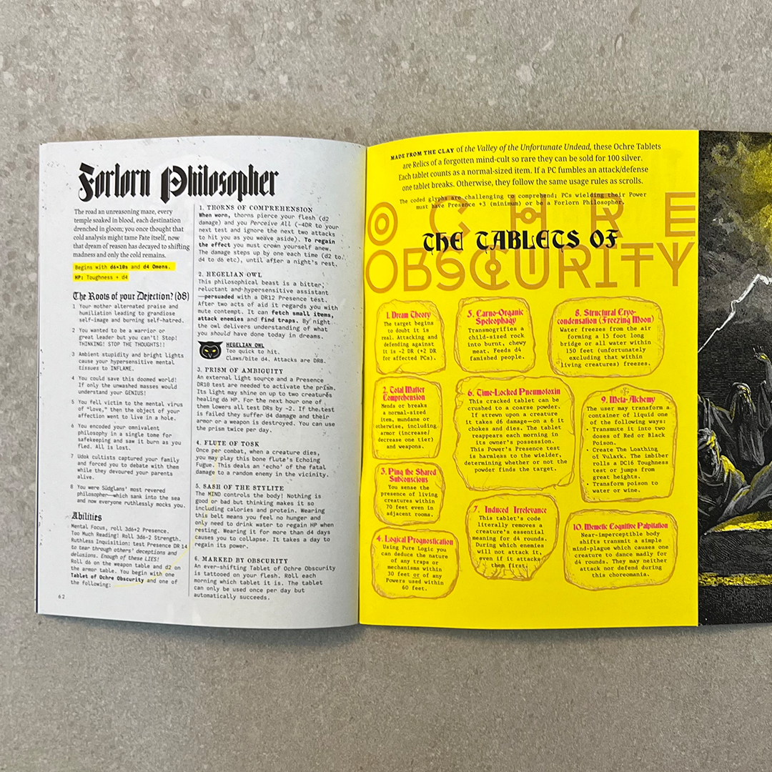 - The Tablets of Ochre Obscurity. Ancient, sought-after clay tablets containing Powers that only the most enlightened mystic (or forlorn philosopher) can hope to wield.