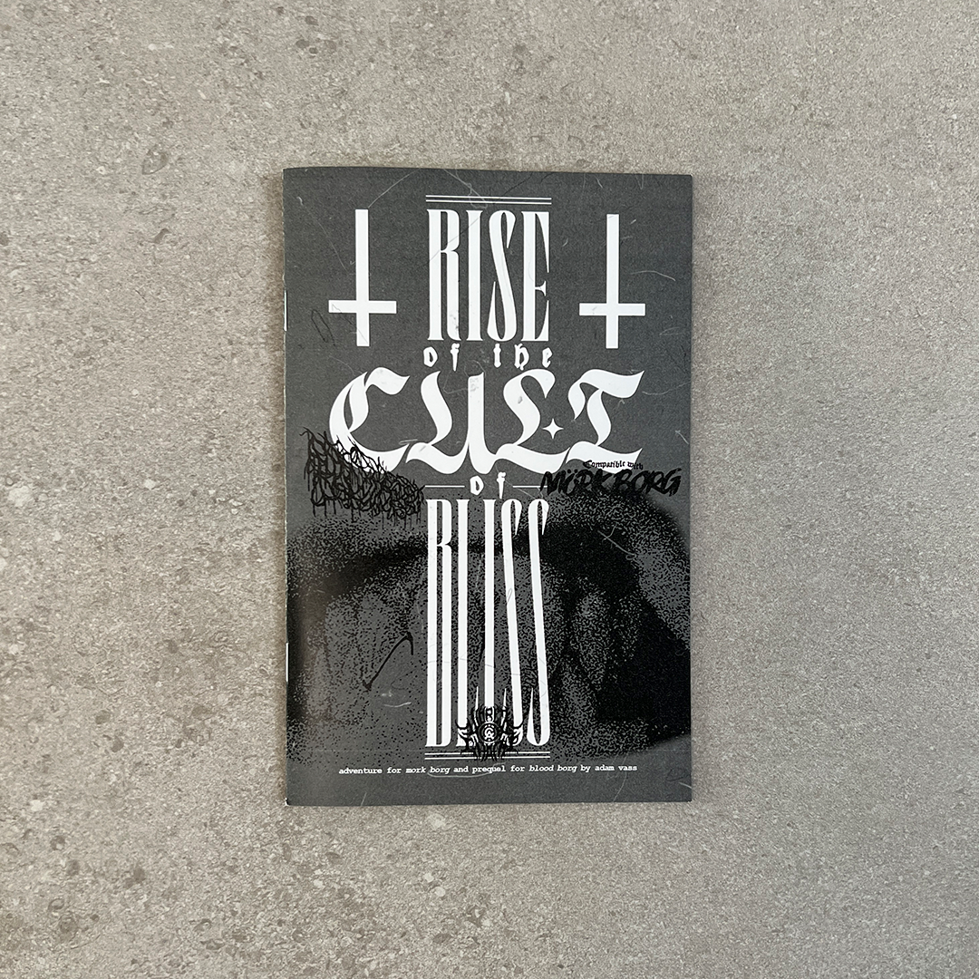 Rise of The Cult of Bliss and Blood Borg are independent productions by World Champ Game Co. and are not affiliated with Ockult Örtmästare Games or Stockholm Kartell. They are published under the MÖRK BORG Third Party License.