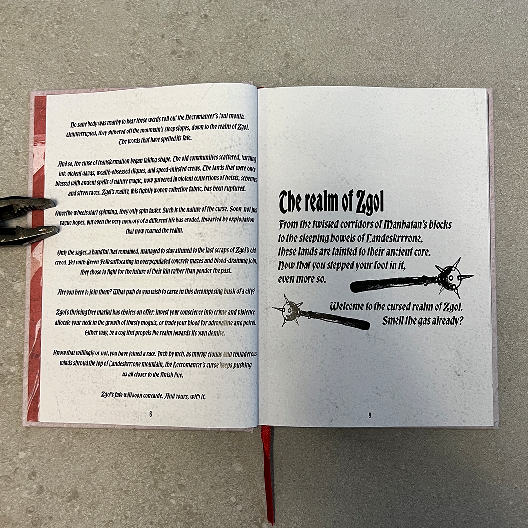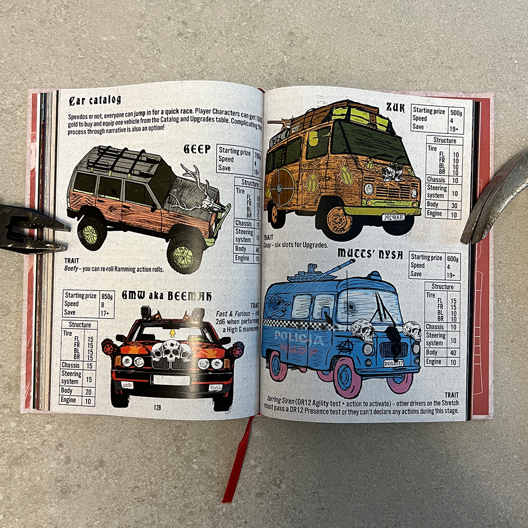 In SLAV BORG, cunning, speed, and covertness reign supreme. You will traverse the borderland with your goblin crew, outmaneuver orcs in illegal (and fixed) street races, and try to put the brakes on the sleaziest necromancer on this side of the Eastern Bloc.
