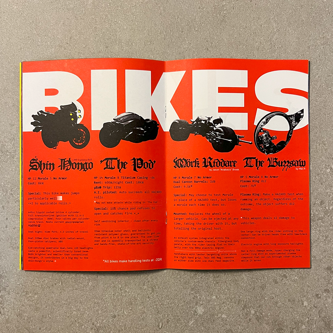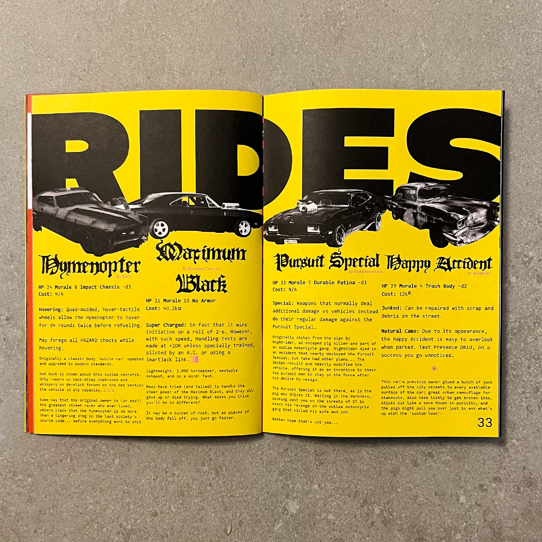 These rules are light-weight, but robust, and will add a ton of flavor to your chase scenes as you bolt down narrow streets in attempt to escape the piggies or track down a corpo shit-bag. Hell, you don't even need to catch 'em, just have a firefight between vehicles - we got rules for that!